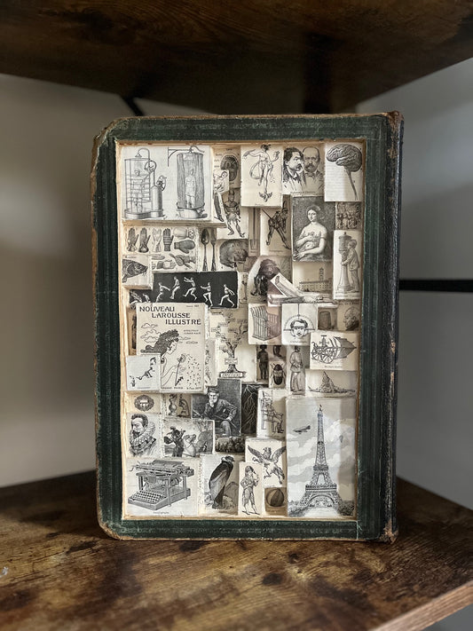Larousse Dictionary, Art Nouveau, Kintsugi Style Altered Book/ Book Carving