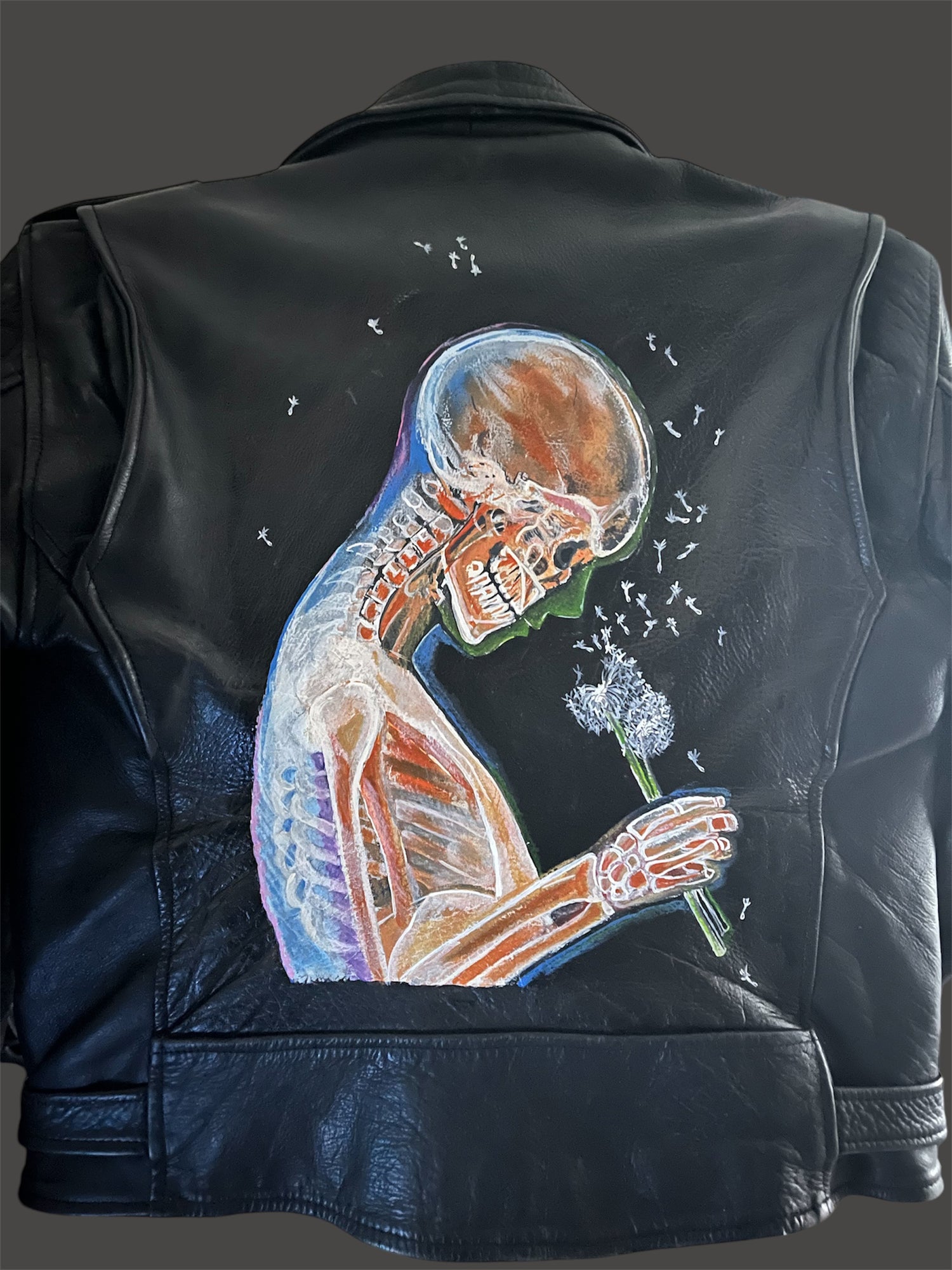 Taking various old pieces of leather weather they are jackets, bags, purses that have been neglected and damaged and bringing them back to life with painted art.