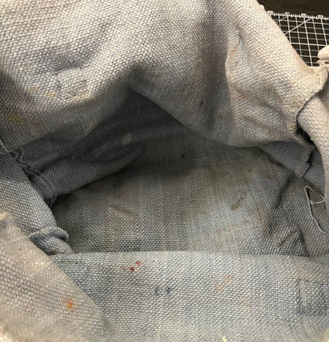 Condition : The bag is a vintaged reclaimed artist bag that was a set of two. These bags have been heavily used in the past, they have been cleaned before customisation, there are some snags and marks from paint in various places but this just adds to the punk vibe. They are heavy duty thick woven fabric and will withstand a shower. The original colour of the bags is a cornflower blue, this has drastically faded on the outside but is still visible on the inside.