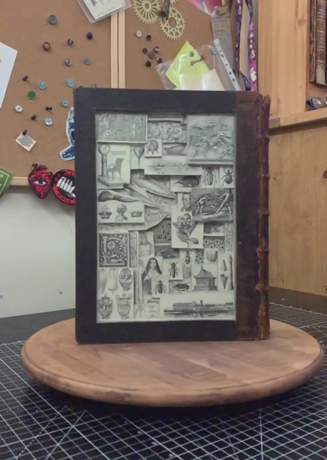 Most the books shown in my store have been created using damaged book, obsolete or second-hand books, With reclaimed glass or Perspex. Every book is unique and different and you will not find another one the same. Every book is picked because of one or many of the following things such as the illustrations, the patina and or wear and tear and are seen as part of the art work and not an imperfection or a fault.