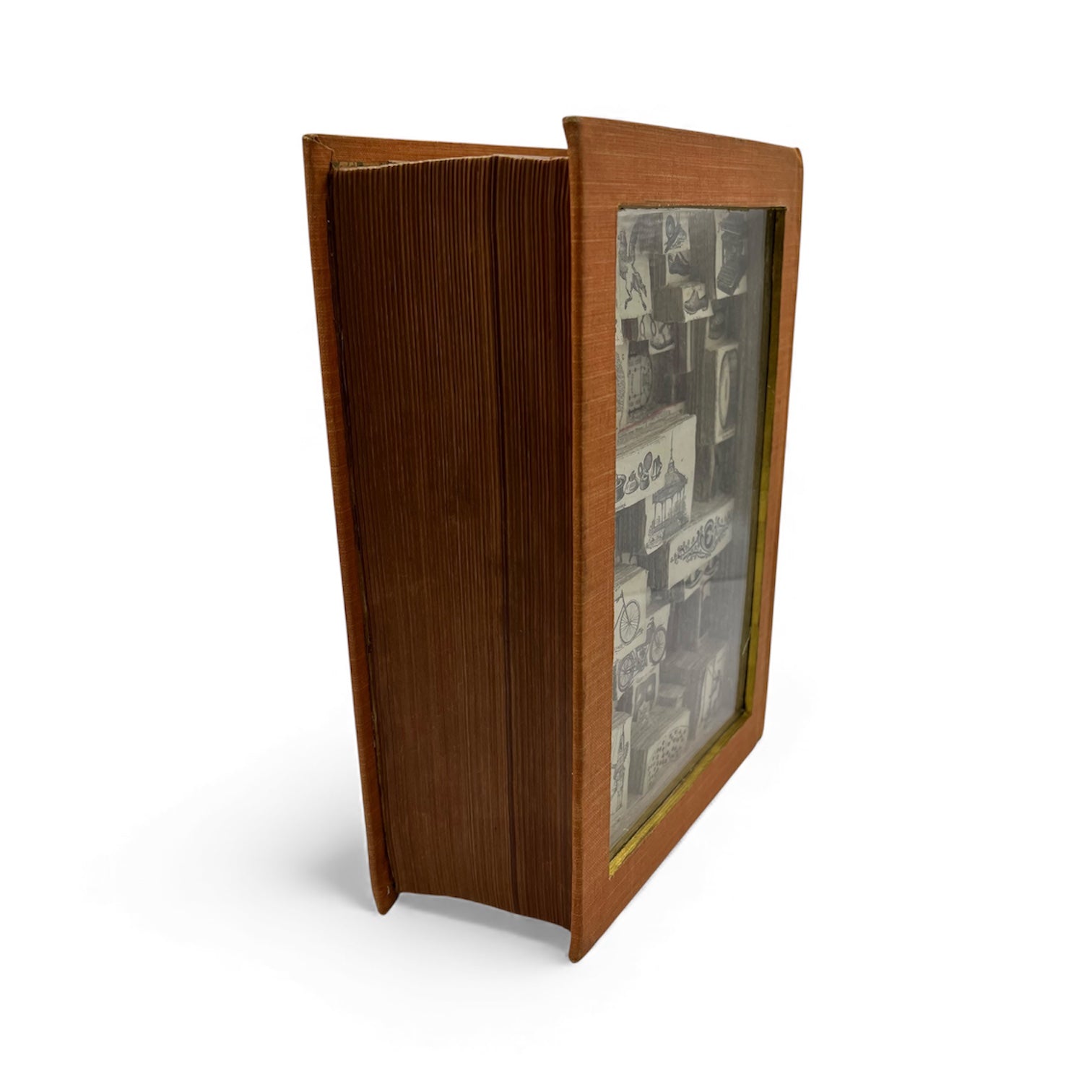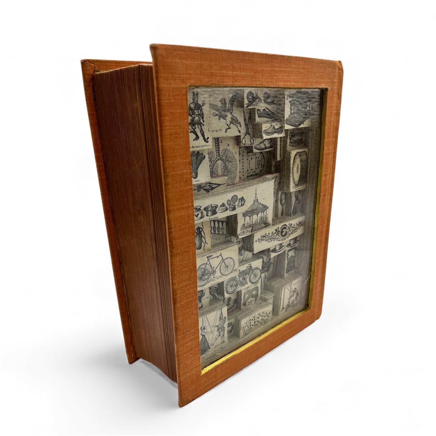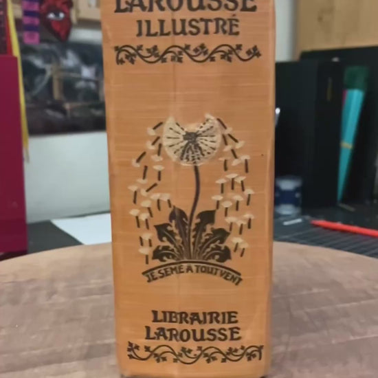 As part of the on going dictionary series, this is a small Larousse dictionary book carving is made from vintage damaged French dictionaries that are repurposed into this free standing sculpture. The book is a juxtaposition of Art Nouveau and Art Deco and will look good on any shelf or unit and can be used as a single book end. The carving is a single unit that is sealed and has a Perspex front to keep the dust out These are suitable gifts for book lovers or people who love the unusual and quirky curios.