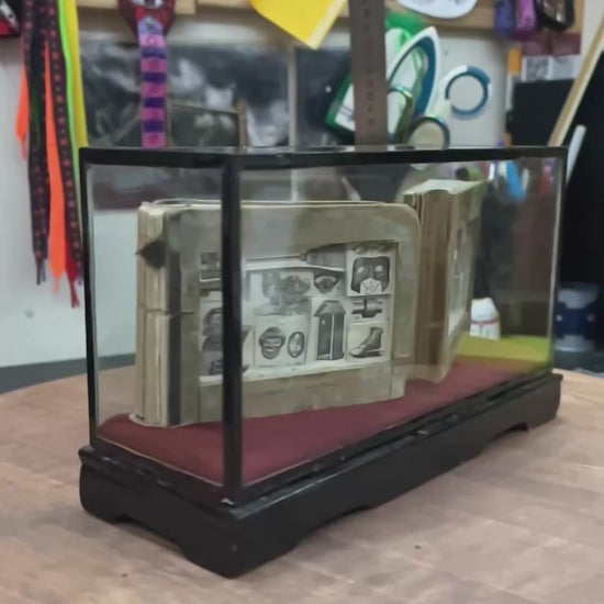 The Egg Books - Altered Book/ Book Carving in Vintage Glass Case